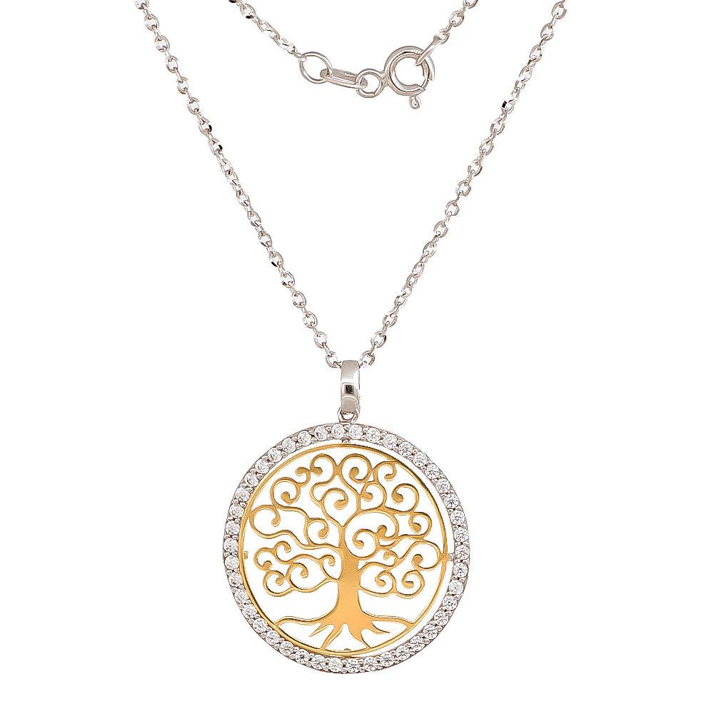 Collana Albero della Vita in Oro Bianco e Giallo 18 Kt e Cubic Bianca