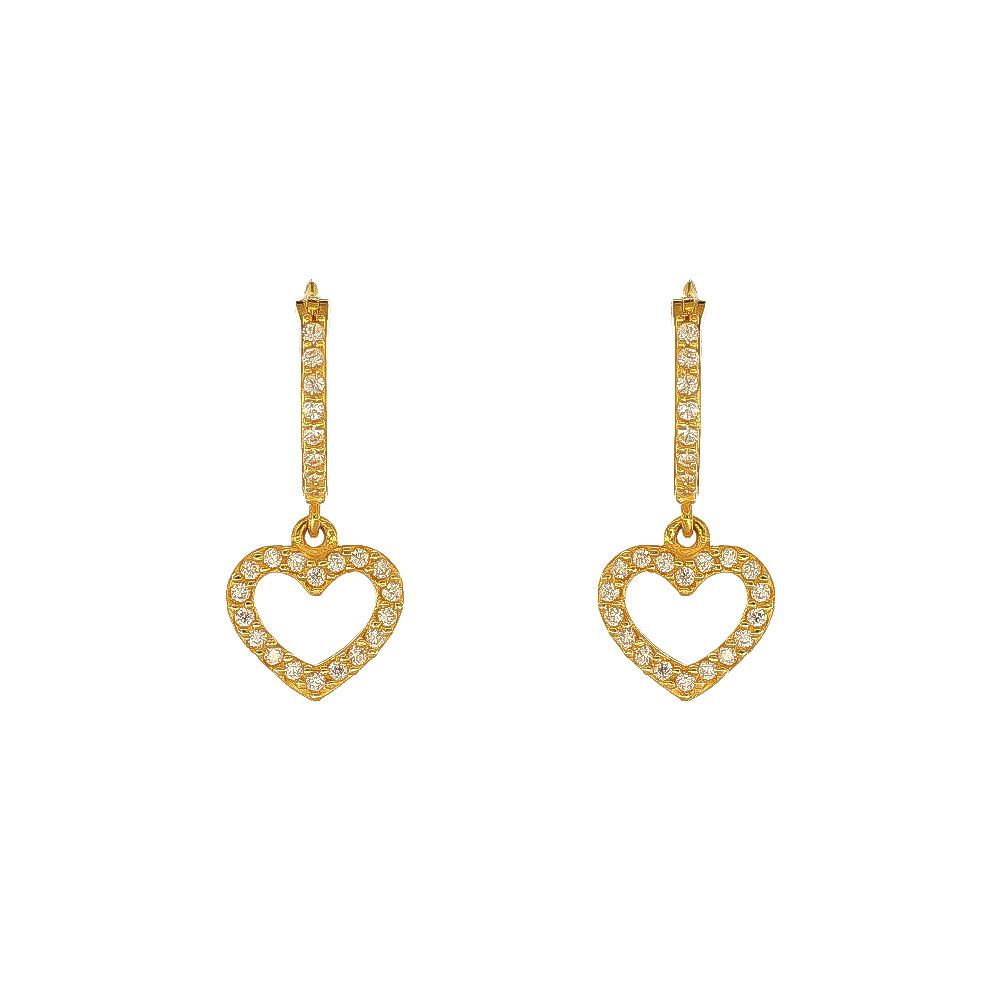 Orecchini Cerchi Pendenti con Cuori in Oro Giallo 18 Kt e Cubic Bianca