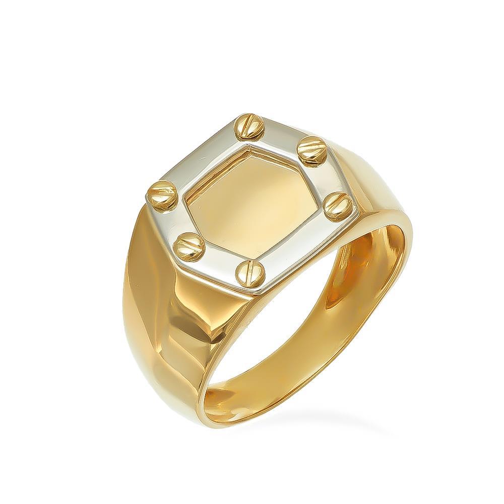 Anello Uomo Sigillo con Viti in Oro Giallo e Bianco 18 Kt