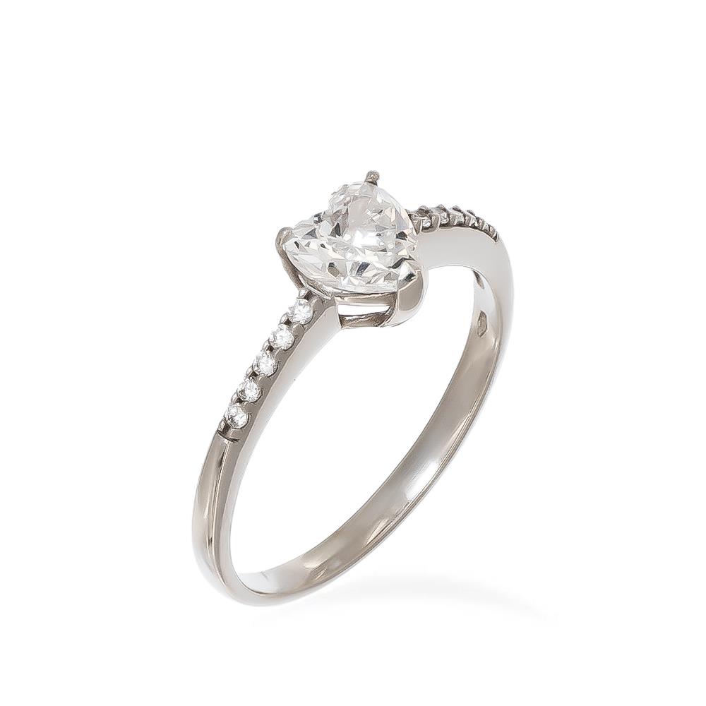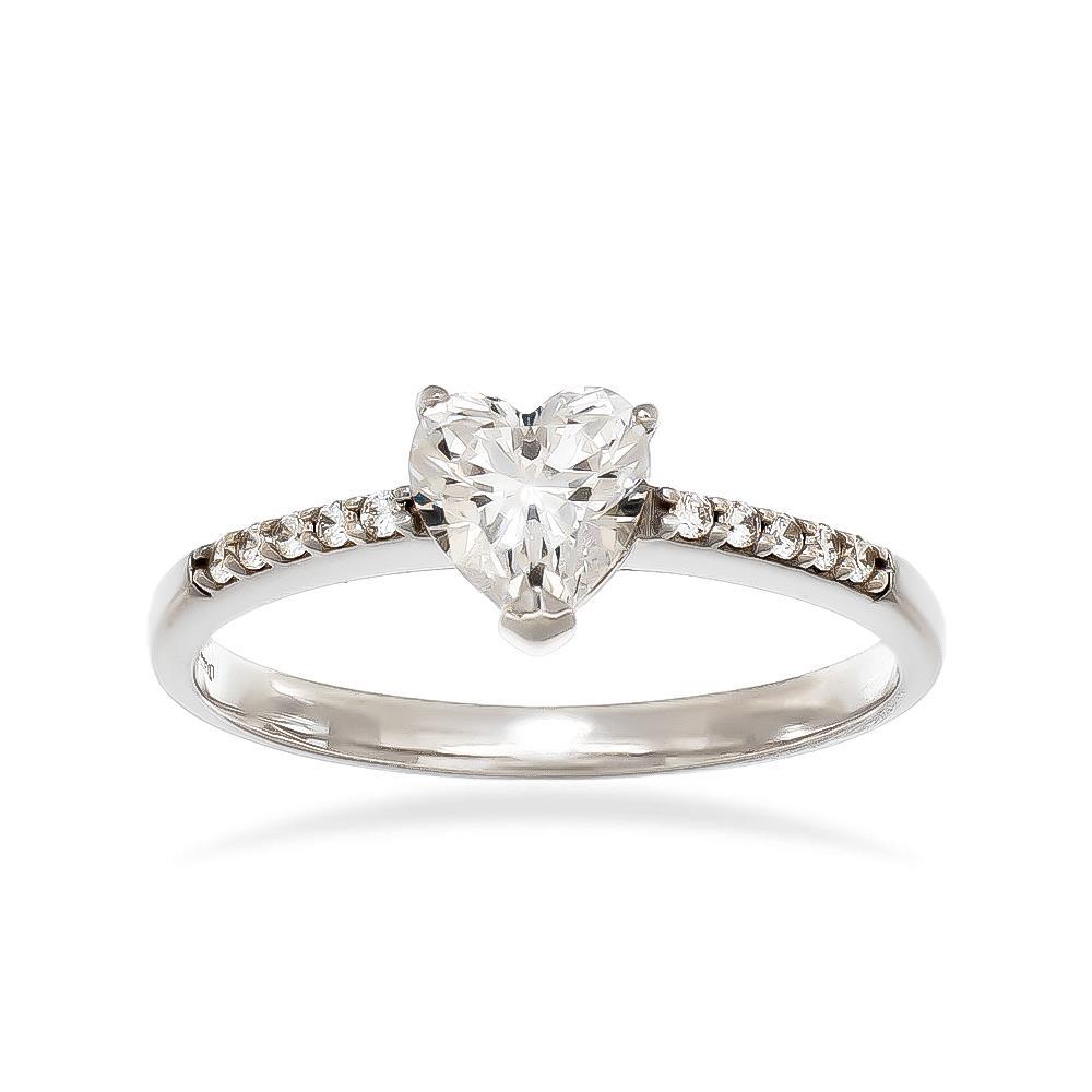 Anello Solitario Cuore in Oro Bianco 18 Kt e Cubic Bianca