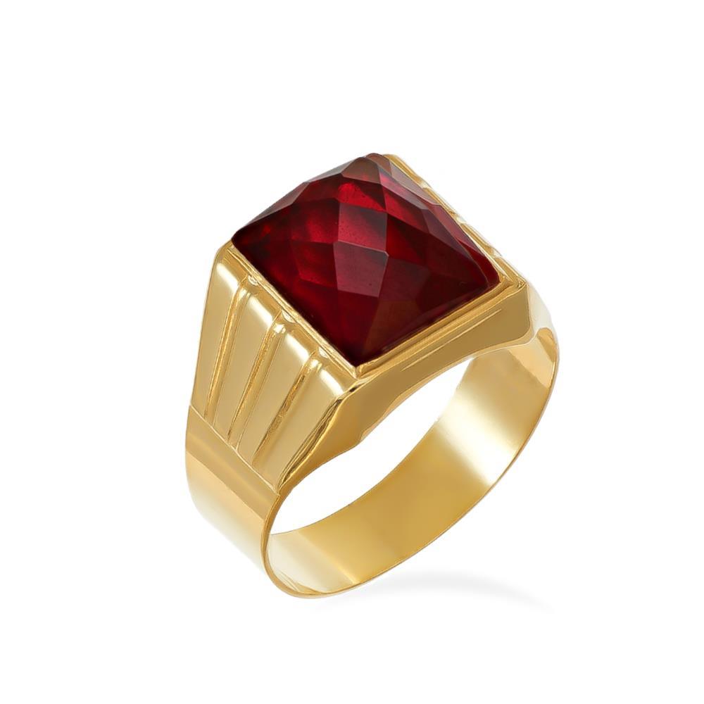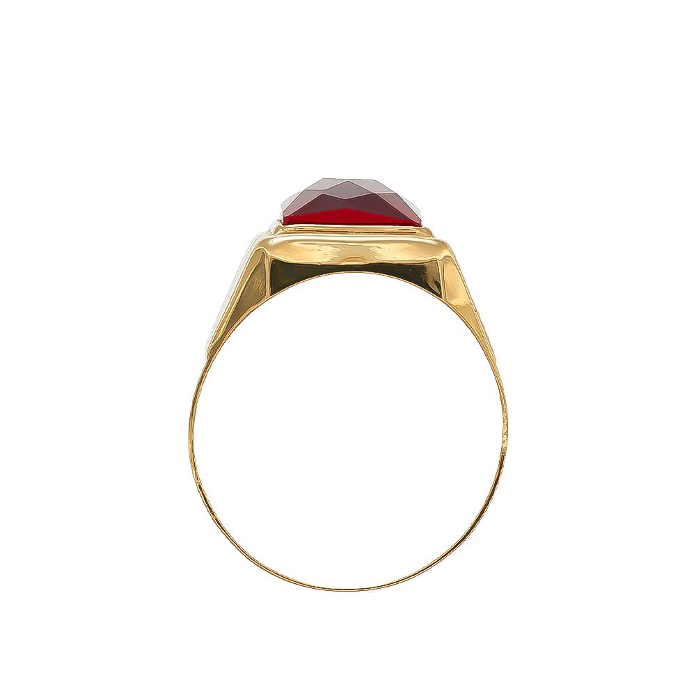 Anello Uomo Sigillo in Oro Giallo 18 Kt con Pietra Rossa Rubino