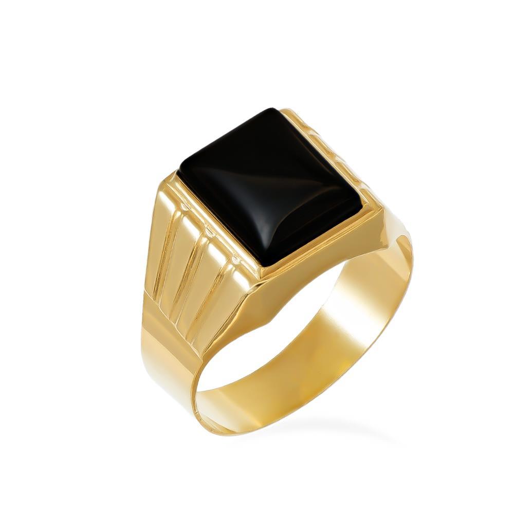 Anello Uomo Sigillo in Oro Giallo 18 Kt e Onice Nera