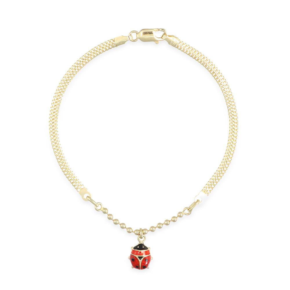 Bracciale con Coccinella in Oro Giallo 18 Kt e Smalto a fuoco