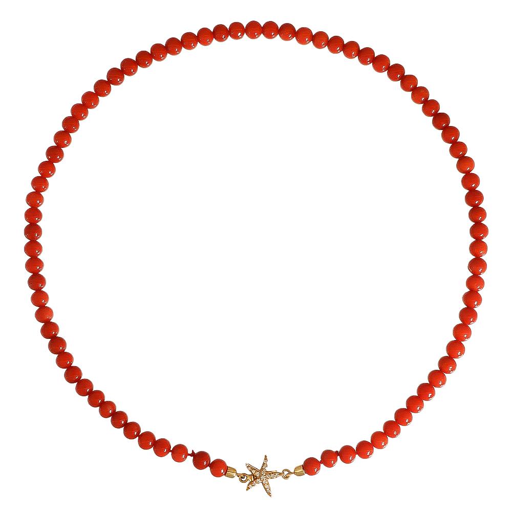 Collana con Corallo Rosso e Stella in Oro GIallo 18 Kt e Diamanti