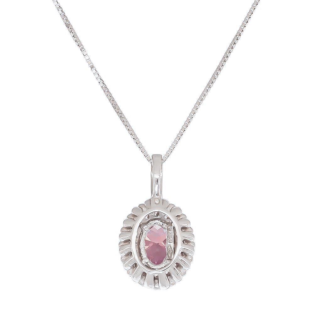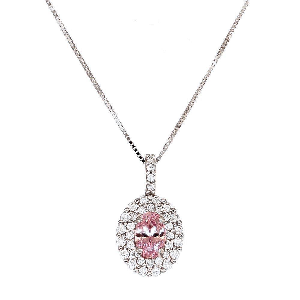 Collana con Pendino Ovale in Oro Bianco 18 Kt e Cubic Rosa