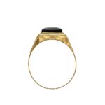 Anello in oro giallo 750°/°°. Peso: 5,8 GR. Dimensioni sigillo alto 13 mm e largo 9 mm. Onice nera.